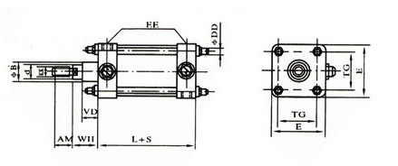 | 缸径 | d | KK | AM | EE | Φ B | WH | VD | L | ΦDD | TG | E |